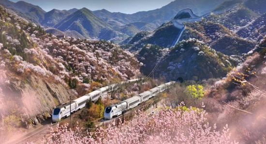 列车行驶在八达岭群山中的京张铁路上 王嵬/摄
