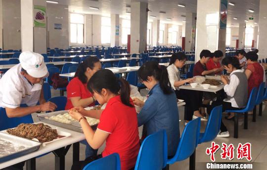 6月6日,烟台二中高考生集体吃上了老师亲手包的“状元饺”。孙圣雅 摄