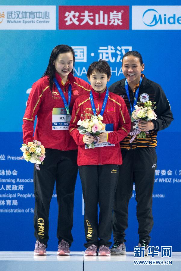 新华社武汉6月6日电(记者喻珮、肖亚卓)正在武汉体育中心举行的第21届国际泳联跳水世界杯6日迎来第三天的赛事。在晚上进行的女子单人10米跳台比赛中,中国小将张家齐和任茜分别获得该项目金、银牌。马来西亚选手潘德莉拉获得铜牌。