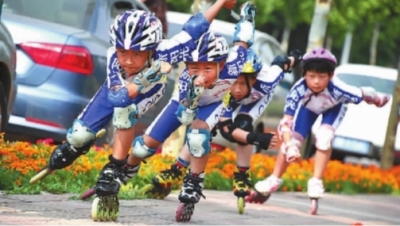青岛城阳区新阳光轮滑队小队员们的活力身影,成为这座海滨城市一道亮丽的风景线。新华社发
