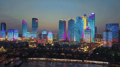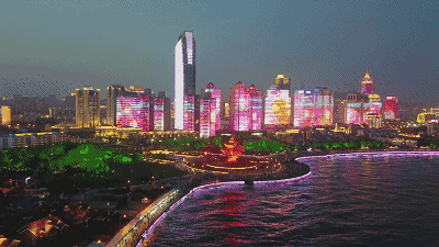 灯火璀璨的建筑群。王华 于胜宪 摄(图片来源:青岛新闻网)