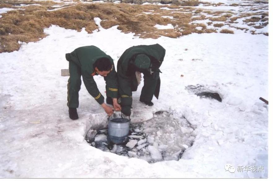 官兵们告别凿冰取水