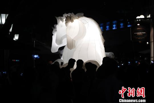 上海时尚地标上演“光影舞马”夺人眼球。 汤彦俊 摄