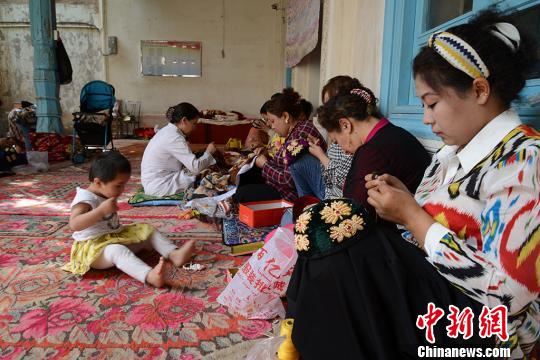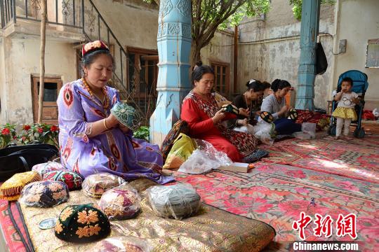 中新网新疆喀什6月9日电(勉征)“合作社的生意好,如今家里什么活都不用我干。”在新疆喀什老城一家妇女手工艺品合作社里,负责人阿瓦古丽·卡斯木正带着十几名员工制作新疆特色手工花帽。