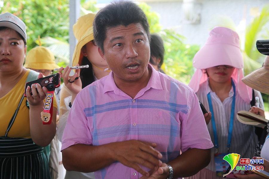 三沙永兴环保中心主管符朝宁接受记者采访。中国青年网记者 杨青山摄