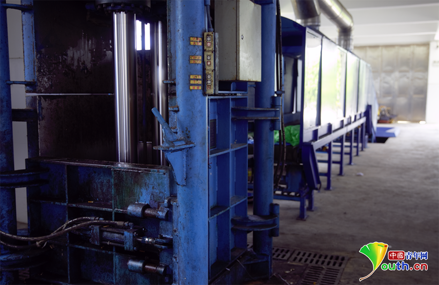 压缩打包机,对可回收利用垃圾进行压缩打包处理,方便运输。中国青年网记者 杨青山 摄