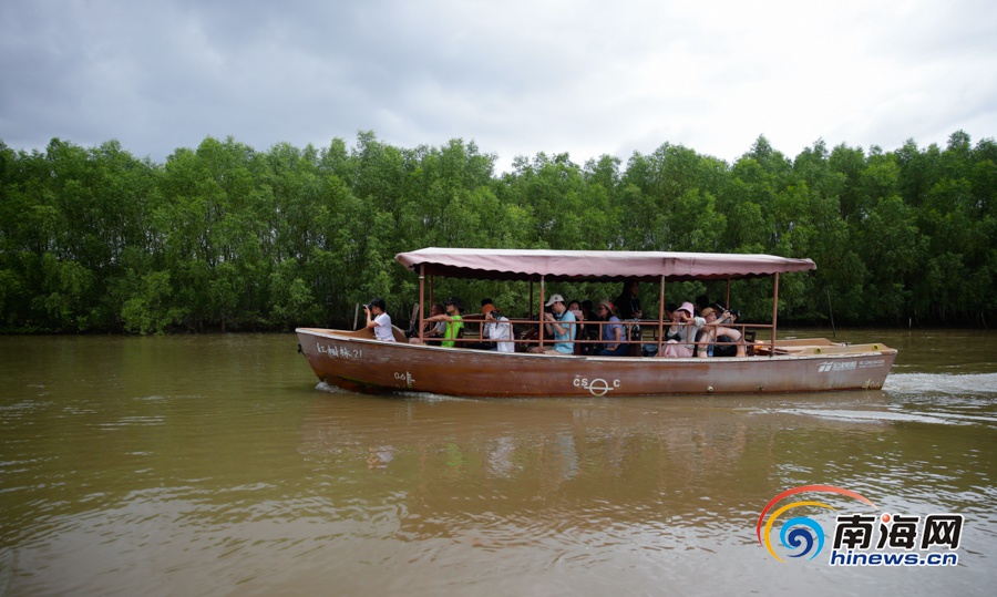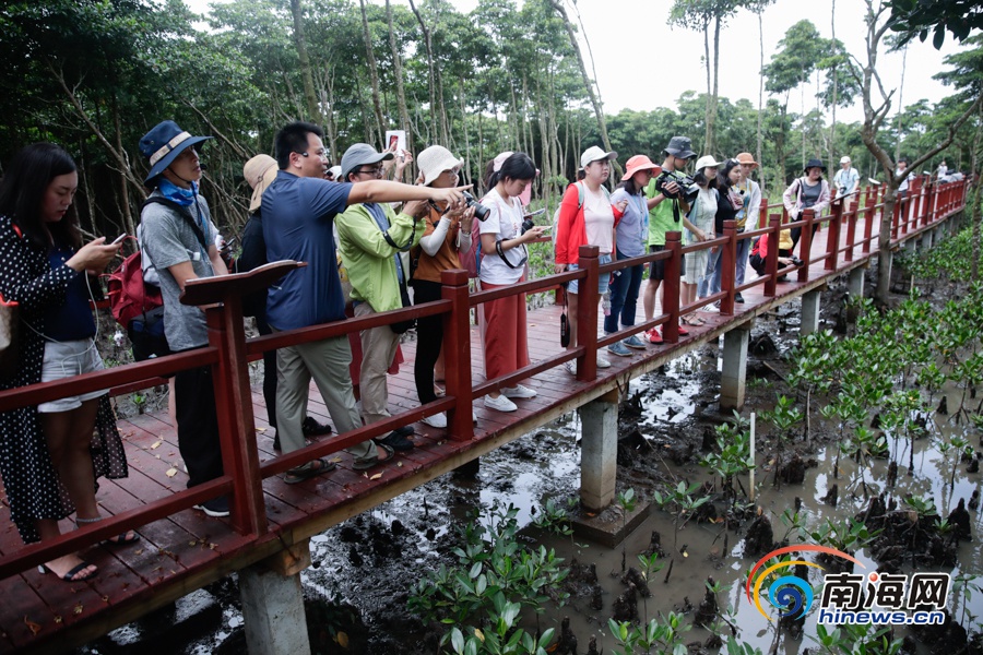 绿树蓝天,碧波荡漾,有朋自远方来,轻风拂过,水中的红树仿佛都招起了手。6月11日上午,参加“新时代·幸福美丽新边疆”海南行网络主题采访活动的中央重点新闻网站及各属地重点新闻网站、新媒体记者一行来到海南东寨港国家级自然保护区,在如画美景中深入了解这片中国连片面积最大、保育最好、最具代表性的红树林的保护之路。