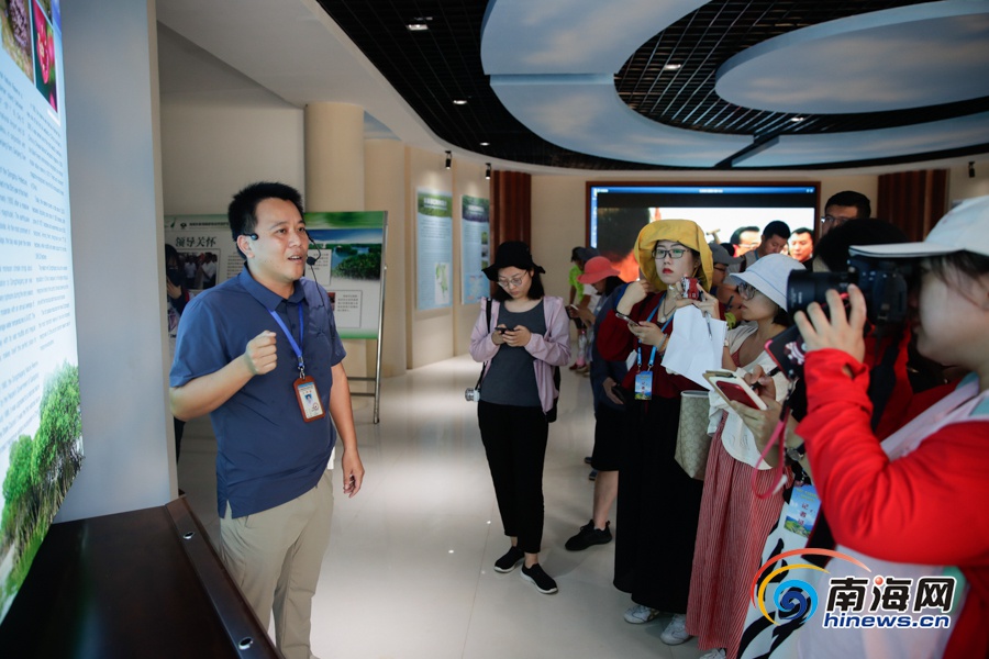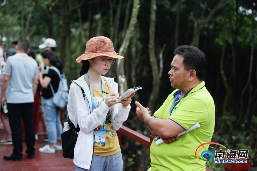 网媒记者采访东寨港国家级自然保护区工作人员。南海网记者刘洋摄