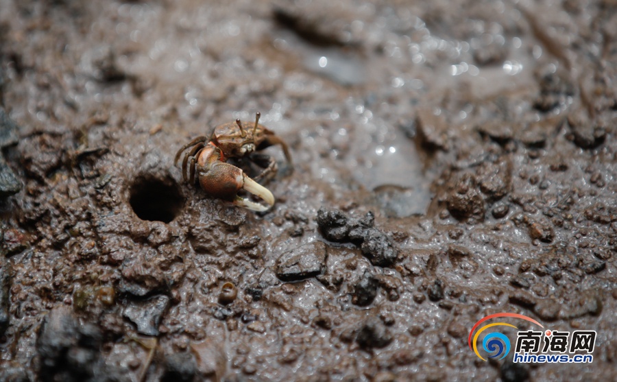 东寨港国家级自然保护区内物种丰富,图为栖息在保护区内的小螃蟹。南海网记者刘洋 摄