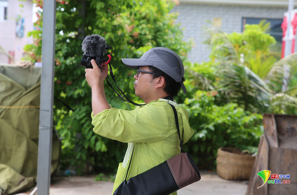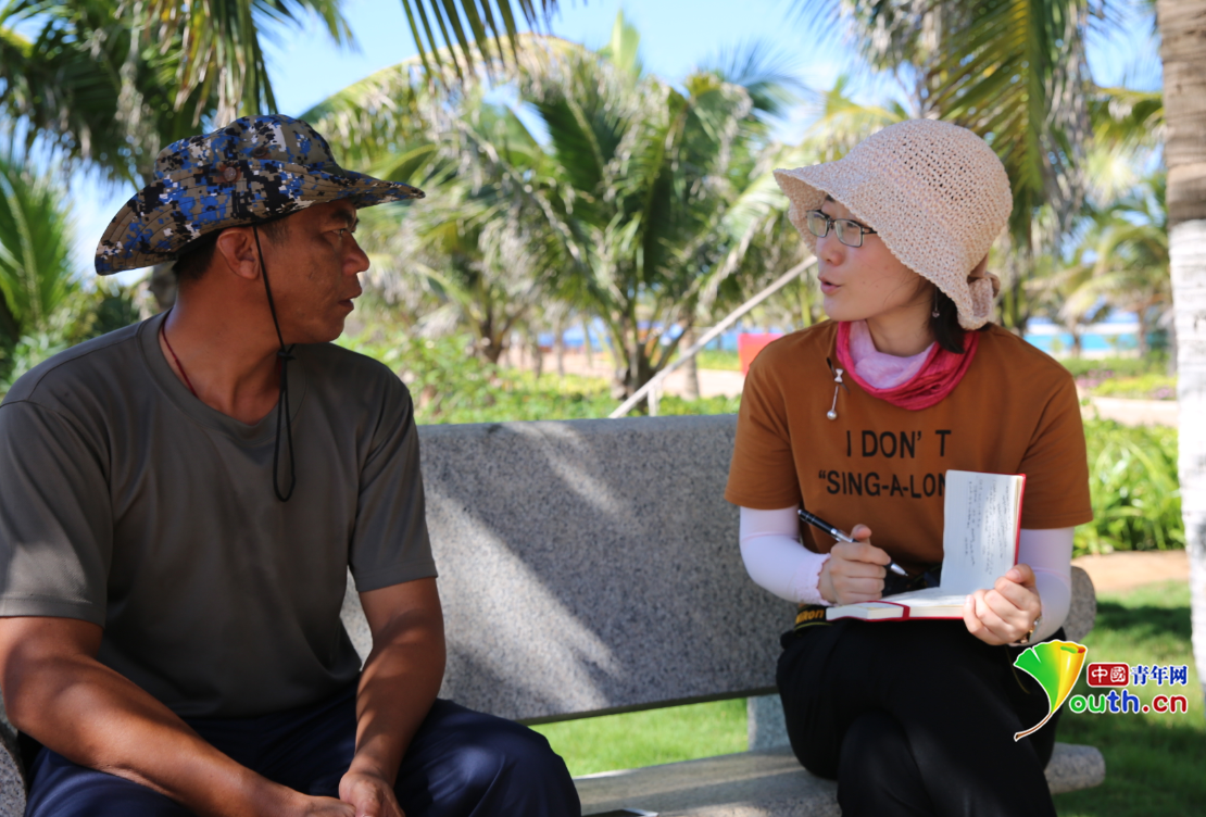 光明网记者刘炼在永兴岛上采访。
