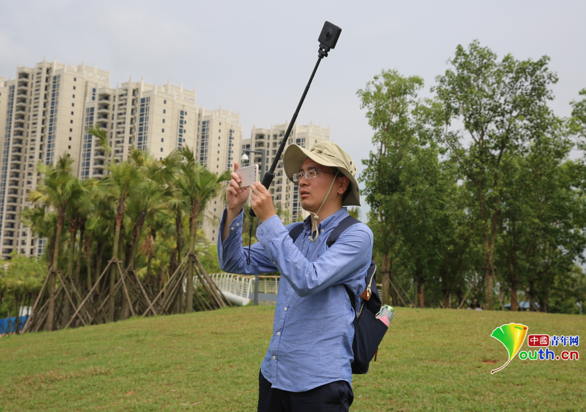 中国经济网记者王炬鹏正在拍摄全景图片。
