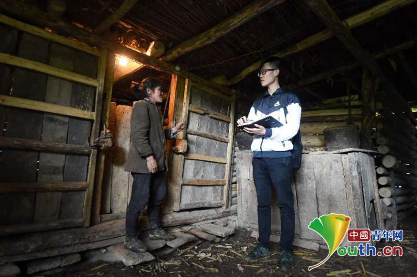 几家走下来,村里的状况对三个“90后”内心触动特别大。刘峻潇从小在重庆市区长大,朱黎和李大川都生活在县城周边条件较好的乡镇。“从没见过这么多的木架房。”刘峻潇感慨地说。老丁则安慰道:“习惯就好。”