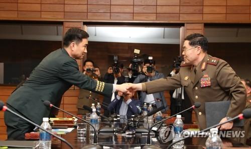 韩朝当天在板门店朝方一侧统一阁举行将军级军事会谈,会后发布联合新闻稿称,双方就《板门店宣言》明文约定的缓解军事紧张的方案进行讨论,议题包括停止一切敌对行为避免军事冲突、在西部海界一带共建和平水域、为韩朝交流合作及往来接触提供军事保障。