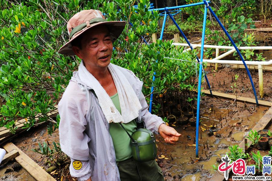濒危植物红榄李的“守护神”王式军在育苗。中国网记者 唐佳蕾/摄