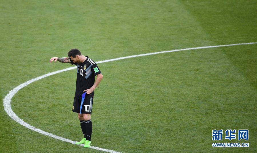 6月16日,阿根廷队球员梅西面对平局的结果感到无奈。当日,在莫斯科进行的2018俄罗斯世界杯足球赛D组小组赛中,阿根廷队以1比1战平冰岛队。新华社记者 王毓国 摄