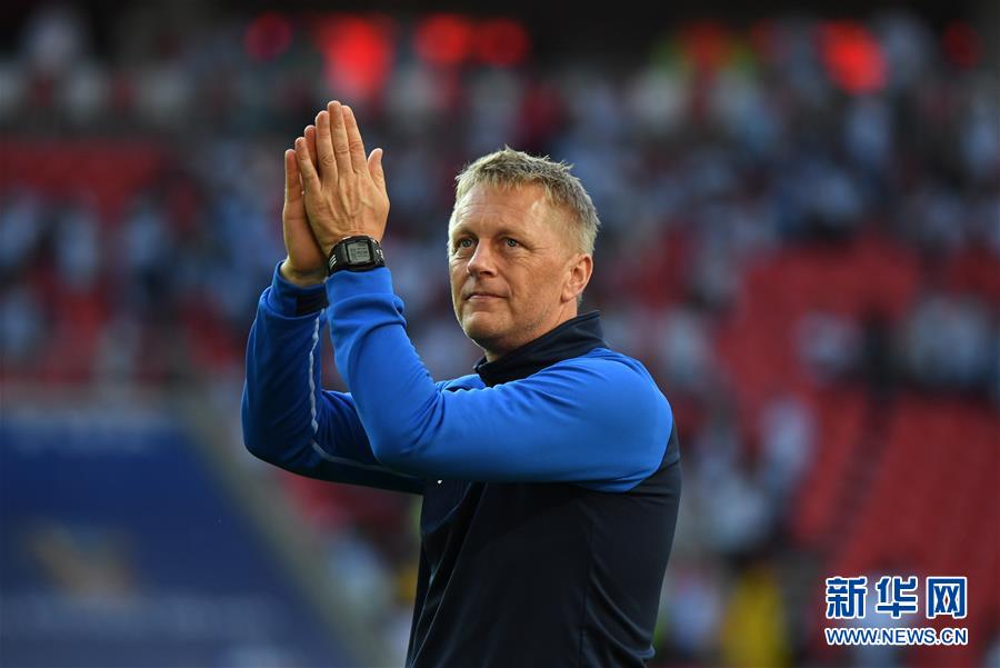 6月16日,冰岛队主教练哈尔格里姆松在赛后向球迷致意。当日,在莫斯科进行的2018俄罗斯世界杯足球赛D组小组赛中,阿根廷队以1比1战平冰岛队。新华社记者 杜宇 摄
