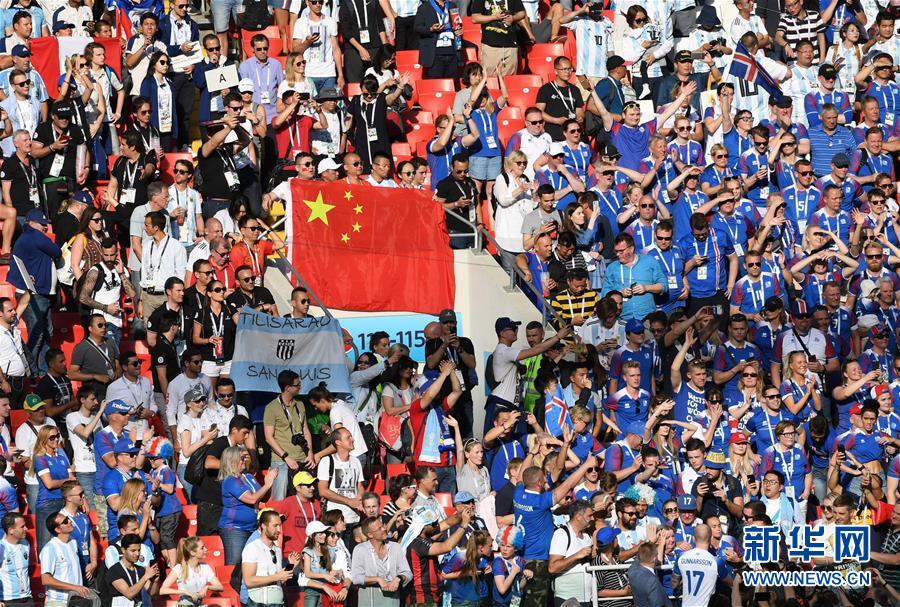 6月16日,中国球迷来到赛场观看比赛。当日,在莫斯科进行的2018俄罗斯世界杯足球赛D组小组赛中,阿根廷队以1比1战平冰岛队。新华社记者 王毓国 摄
