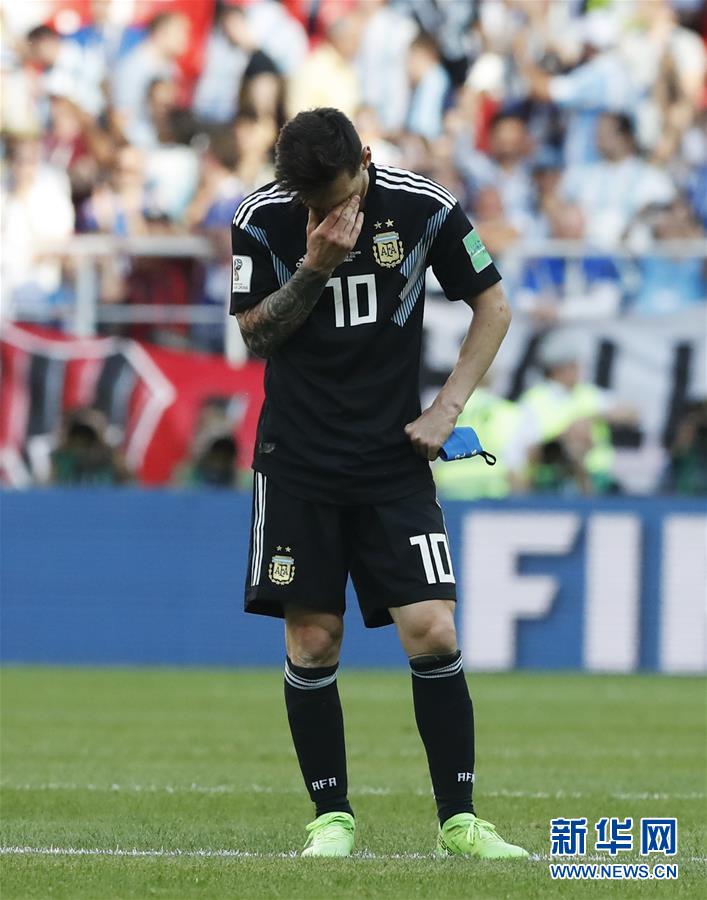 6月16日,阿根廷队球员梅西在比赛后神情沮丧。当日,在莫斯科进行的2018俄罗斯世界杯足球赛D组小组赛中,阿根廷队以1比1战平冰岛队。新华社记者 曹灿 摄