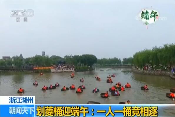 央视网消息:在江南水乡 浙江湖州,家家户户都有一种劳动工具,叫做 菱桶,捕鱼、采菱等水上精细化操作都要用。因为端午期间正是难得的农闲时期,所以久而久之,这里就出现了一种 划菱桶 的端午节习俗,不同于龙舟赛需要众人齐心合力,划菱桶比赛是 一人 一桶,怎么划,全靠自己。