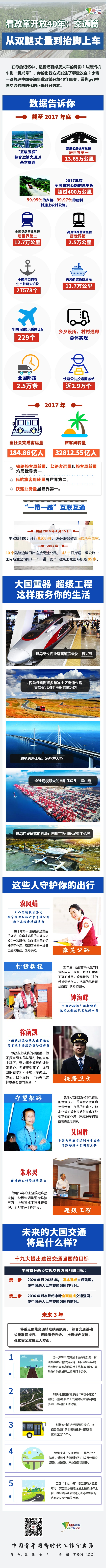 中国青年网北京6月 18日电(记者张潼杨月实习记者曹若鸿)在你的记忆中,是否还有绿皮火车的身影?从蒸汽机车到“复兴号”,你的出行方式发生了哪些改变?小青一图梳理中国交通事业改革开放40年巨变,带你get中国交通强国时代的正确打开方式。