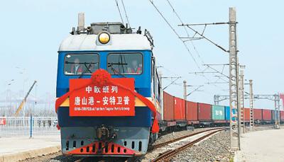 图为中国唐山港至比利时安特卫普的中欧班列开通。