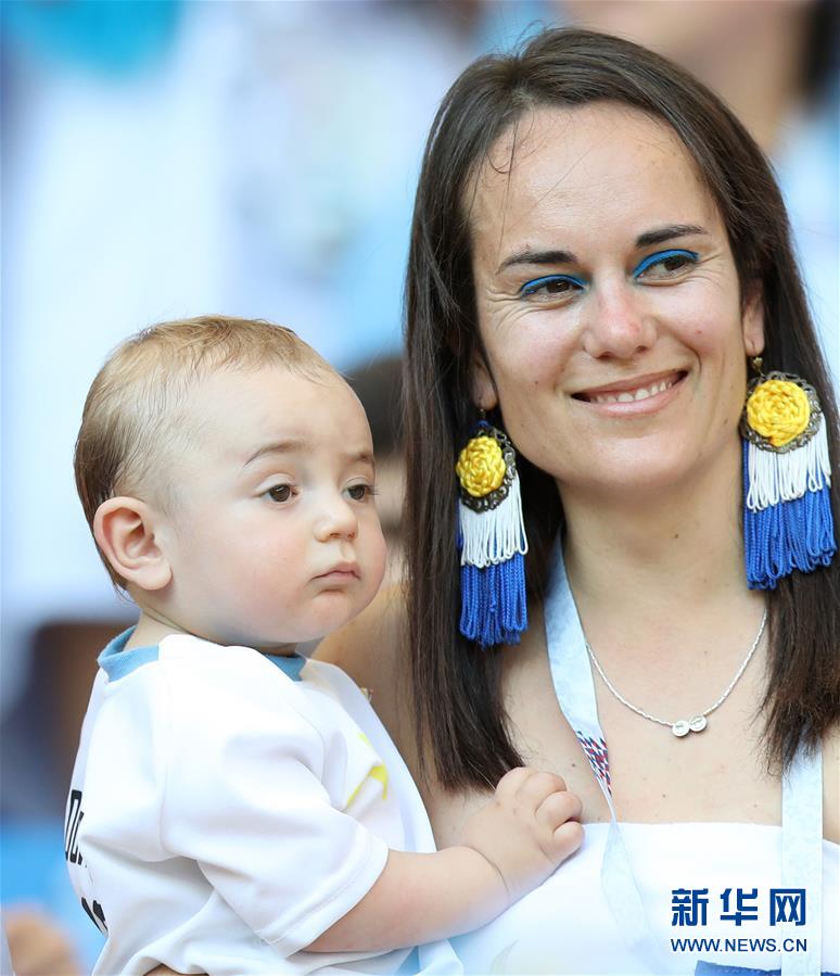 这是6月20日,一名乌拉圭队小球迷在乌拉圭队对阵沙特阿拉伯队小组赛前。 新华社记者鲁金博 摄