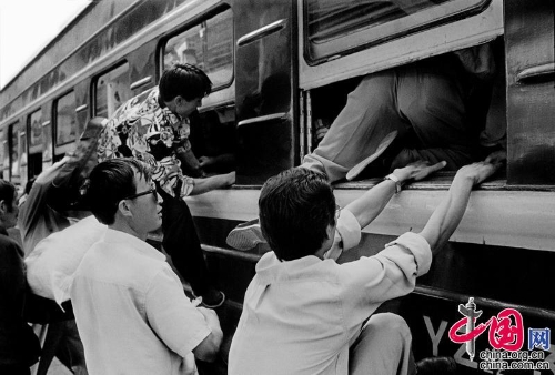 1995年,兰州——西宁。从窗户爬上列车的乘客。王福春摄影