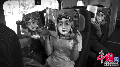 2007年,北京——哈尔滨。三位乘客同时在看火车上的杂志,形成了一种特殊的效果。王福春摄影