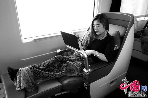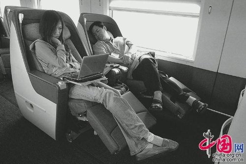 2013年,北京——上海。一位女士在办公,其他的人则睡觉的睡觉,无聊的无聊。王福春摄影
