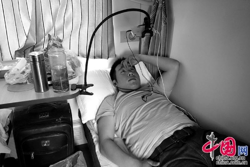 2010年,北京——沈阳。一位小伙子带着眼罩入睡。王福春摄影