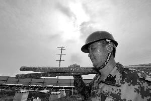 昨日,高温,一名工人在工地搬运建筑材料,大汗淋漓。新华社发
