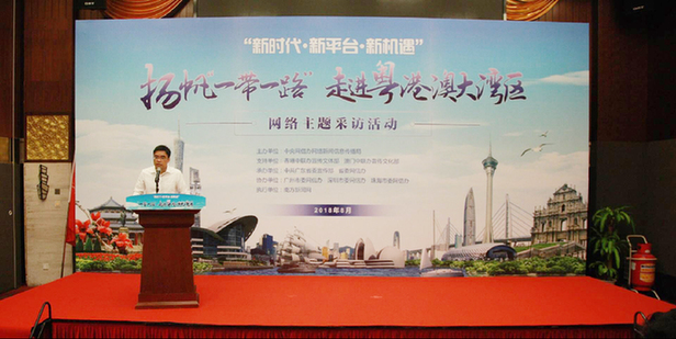 中央网信办网络新闻信息传播局负责人表示,广东作为中国古代海上丝绸之路的重要起点,在参与建设“21世纪海上丝绸之路”中拥有得天独厚的地缘和区位优势。建设粤港澳大湾区,是习近平总书记亲自谋划、亲自部署、亲自推动的国家战略,是新时代推动形成全面开放新格局的新举措,也是推动“一国两制”事业发展的新实践。希望网络媒体记者在采访中扎下身、沉下心,践行“走转改”精神,报道好粤港澳三地在新时代背景下,抓住“一带一路”倡议机遇,开创融合新格局,探索发展新路径,共同建设粤港澳大湾区的生动实践。