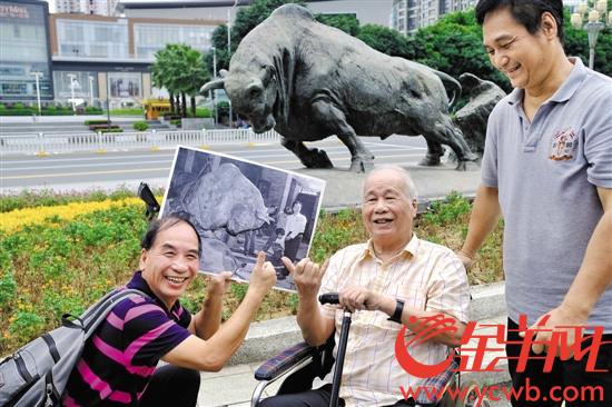 12日9时,记者一行陪同潘老一家三代,从广州美院出发,前往深圳市委门前,追寻《孺子牛》。车窗外,高楼大厦与绿树快速地退后,仿佛进入时光隧道。潘老拿起老照片,脸上神色便亮了起来,眼睛一直盯着,看了将近20分钟。