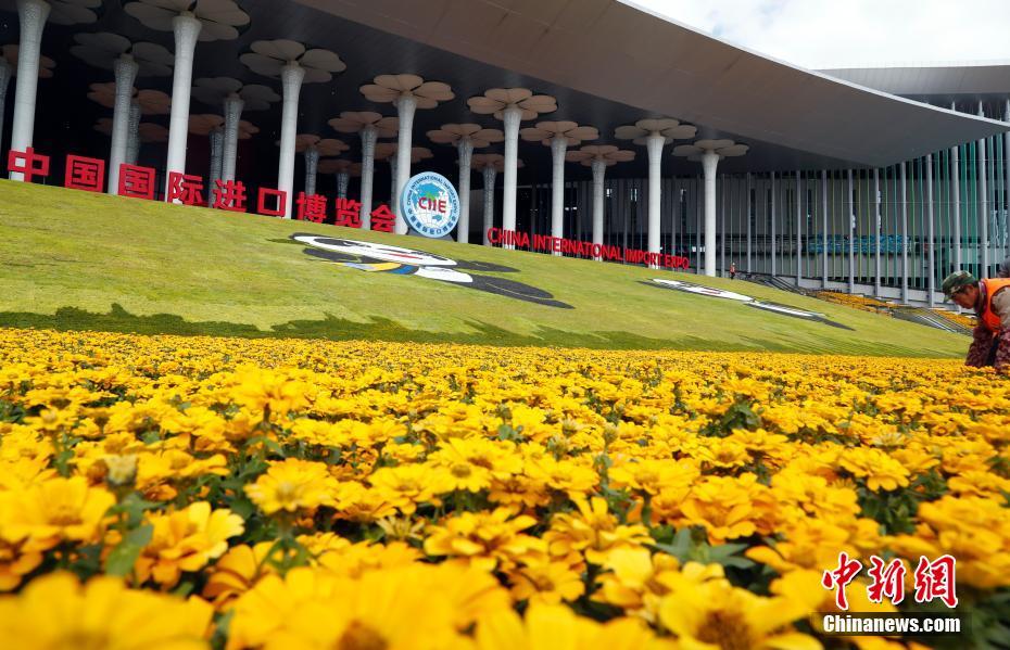进博会主场馆花卉布置工作进入收尾阶段。汤彦俊摄