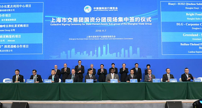 45家市属企业集团组建上海市交易团国资分团,采购商企业累计3500多家,采购人员超过3万人,在智能高端装备、医疗医药保健、汽车零部件、食品农产品、服务贸易等领域将达成100余项交易协议。签约仪式上,上汽集团、华虹集团、上海电气集团、华谊集团、光明食品集团、东浩兰生集团、绿地集团、百联集团、上海银行、上实集团、东方国际集团、申通地铁集团等12家企业集团的17个项目进行了现场集中签约,将促进上海国有企业与外资外商在先进制造业、现代服务业以及战略性新兴产业等领域开展合资合作。