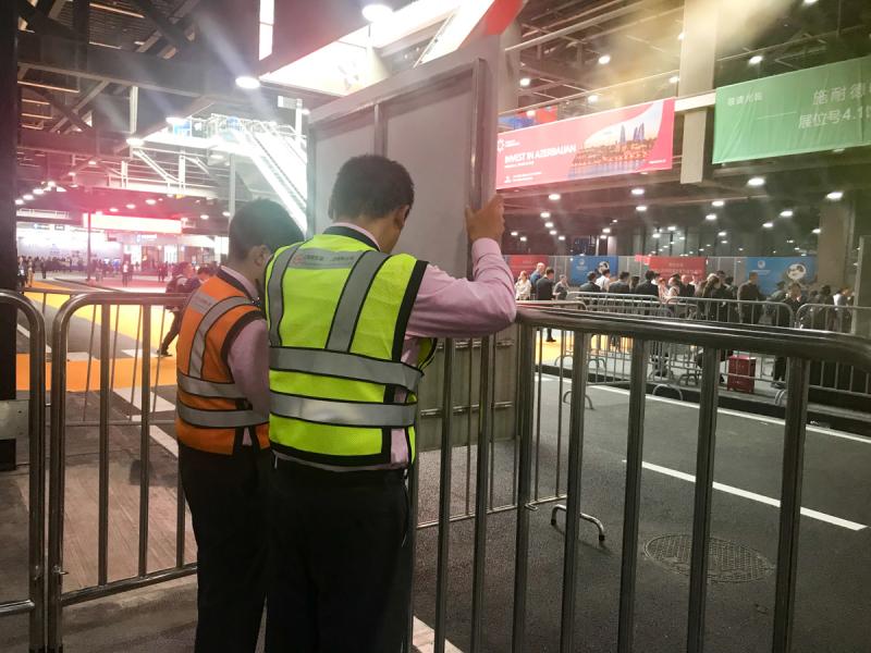 徐泾东站曹铭站长介绍,11月6日,徐泾东站进站86288人次,出站77233人次;11月7日,徐泾东站进站79318人次,出站72535人次;11月8日上午截至11时,徐泾东站出站36278人次。一般来讲,每天下午5点到6点是散场高峰,5点展商散场,6点布展散场。由于徐泾东站的特殊构造,为了避免客流对冲现象,徐泾东站早上6、8号口只出不进,9号口只进不出,6号口实时分流;12点加开4号口,只进不出,免安检。