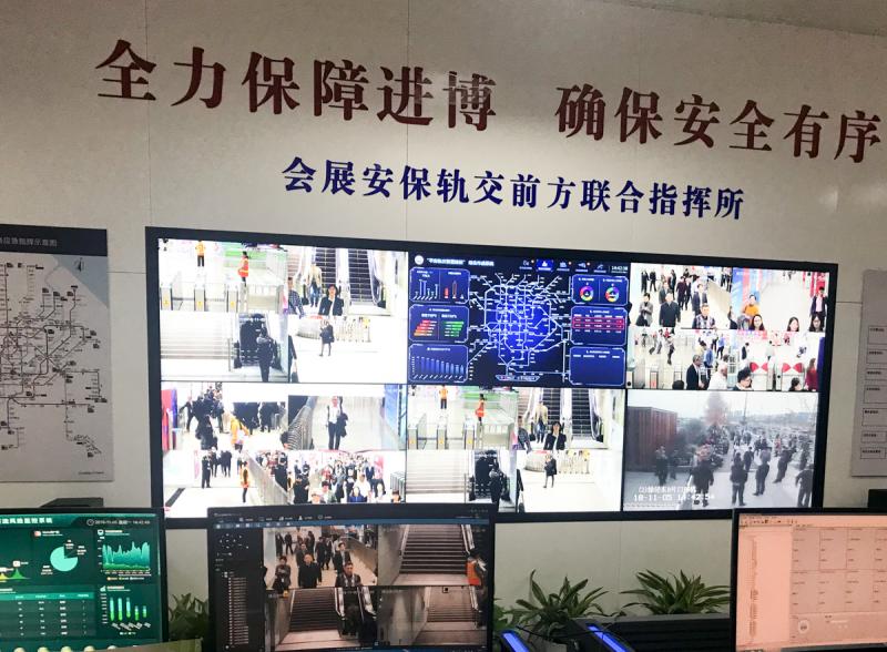 在徐泾东站,建立了“平安轨交智慧建设”综合作战系统。这一平台主要负责和进博会展馆关系最大的“三线三站”,即17号线诸光路站、2号线徐泾东站、2号线虹桥火车站站。记者看到,在这面积不到20平方米的一指挥中心内,公安、地铁、消防联合办公,多台电脑在办公桌上一字排开。地铁出入口探头信息,客流量信息、消防点信息等在屏幕上一目了然。
