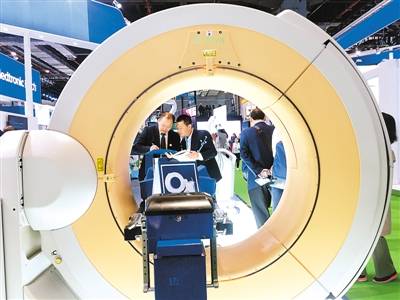 美敦力工作人员向采购商介绍其O型臂术中影像系统。 人民日报海外版记者 邱海峰摄