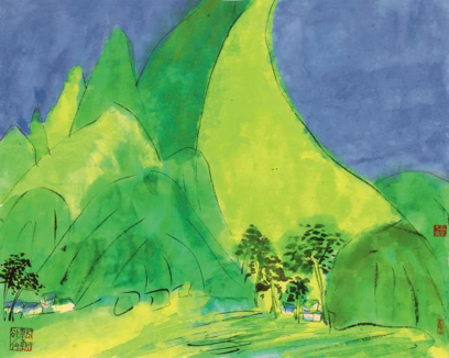 丁雄泉 《深山人家》 设色纸本