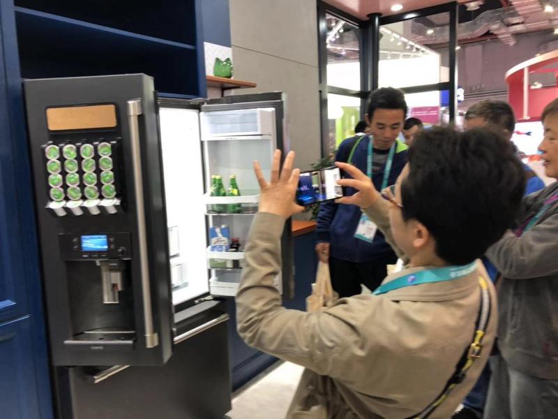 很多大家电也对“懒人经济”做出了诠释。记者注意到,不少进口品牌的冰箱都推出了功能集合。比如,倍科在冰箱门上集合了一个红酒柜,而打开冷藏室的大门,内侧还有一个纯净水饮水口。展台工作人员说,冰箱具备净水功能,可以与家用进水管连通,而这个纯净水饮水口能实时供应冷冻净水,这能方便很多爱喝冻水的消费者。至于红酒柜,则能满足不同家庭的布局需求,“有的家庭喜欢独立的红酒柜,但有些家庭可能觉得有些累赘,合二为一更加紧凑”。无独有偶,美国通用家电在冰箱门上设置了一台专业的胶囊咖啡机,或许能成为咖啡爱好者的心头好。展台工作人员还说,除了与胶囊咖啡兼容、可以随时提供专业水准的热咖啡外,冰箱门上的咖啡机也具备净水功能,可以随时为消费者提供冷热净水。