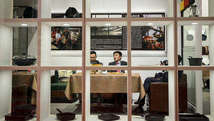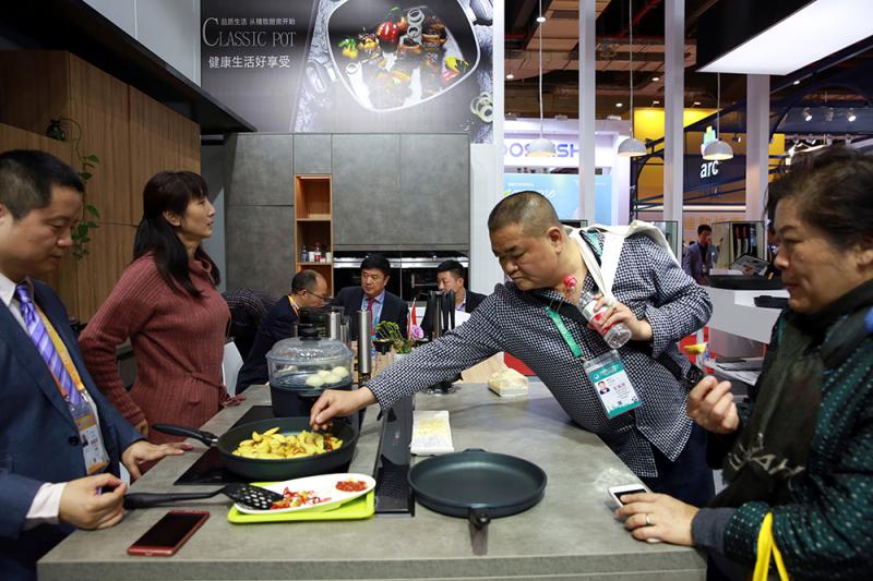 SKK锅具亚洲总代理人赵天平基本全天处于谈生意状态,他深感中国消费升级带来的市场机遇,于是报名第二届进博会,打算以后每届都不缺席。