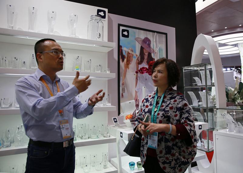尽管是德国市场占有率第一的玻璃制品品牌,该公司还是首次来到中国,客商们饶有兴趣仔细查看。