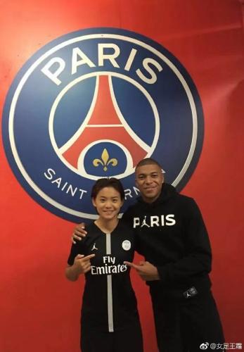 王霜与“未来天王”姆巴佩。图片来源:王霜个人微博