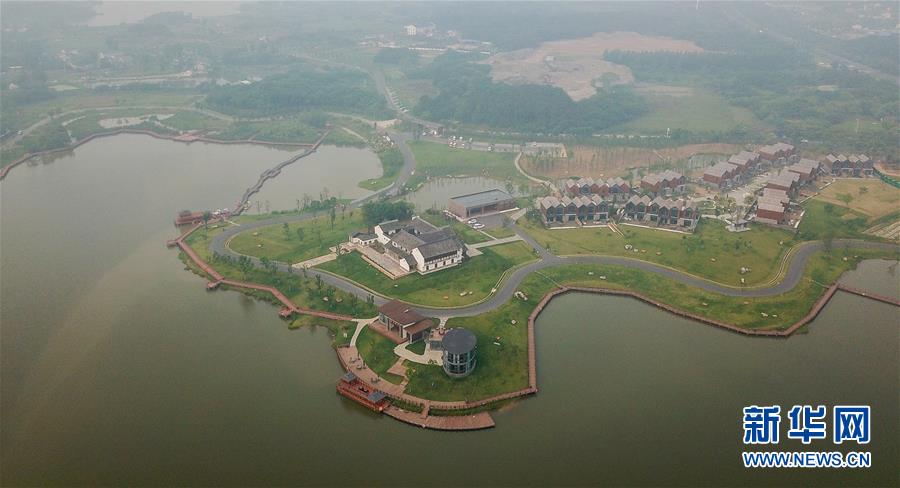 江苏南京江宁云水涧文化展示中心(2018年6月5日无人机拍摄)。云水涧文化展示中心充分整合自然资源,以水、田园、耕地与民宿为载体,打造多元化休闲农业旅游度假地。新华社记者季春鹏摄