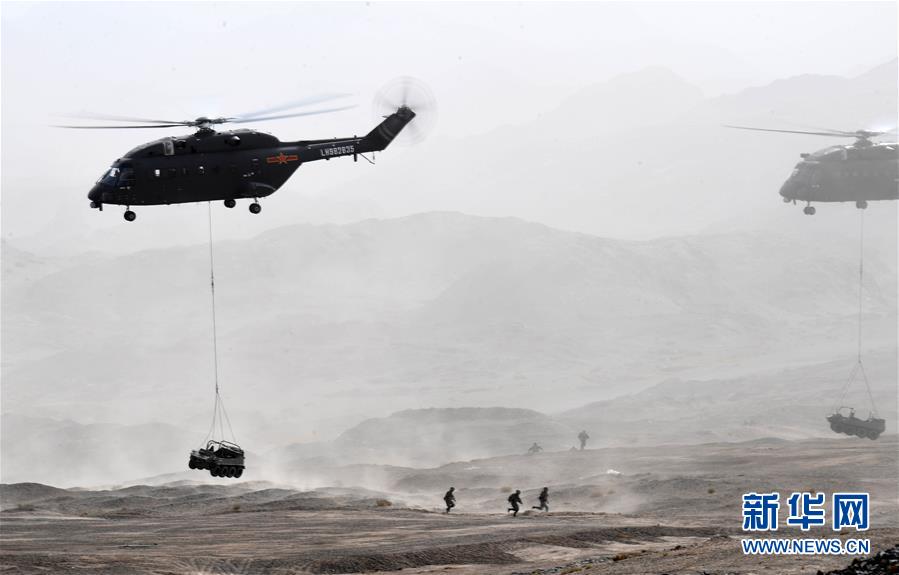 陆军练兵备战及转型建设集训中,某空中突击旅进行实兵实弹演练(2018年5月23日摄)。 新华社记者 张永进 摄