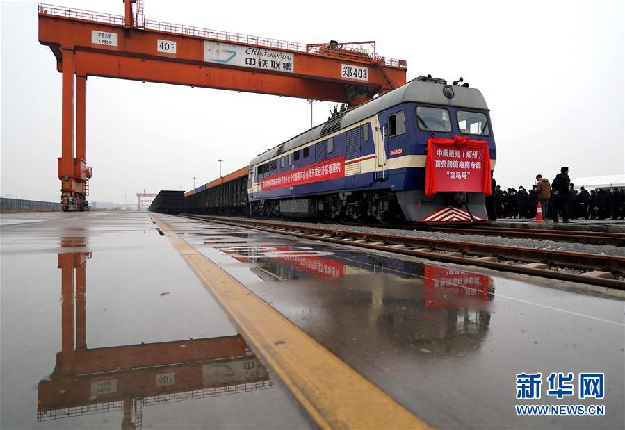 3月2日,中欧班列(郑州)“菜鸟号”列车在中铁联集郑州中心站等候发车。新华社记者 李安 摄