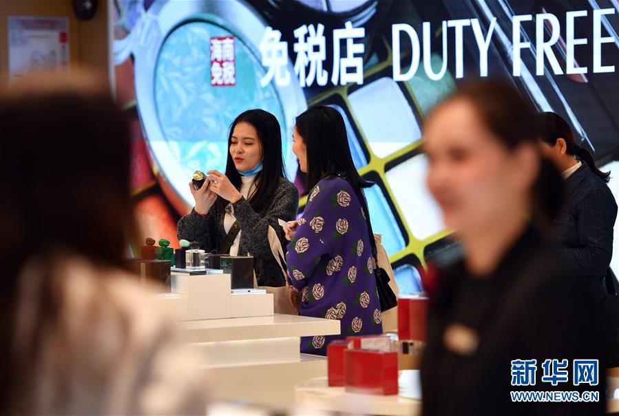 1月19日,顾客在海口免税店选购商品。新华社记者 郭程 摄