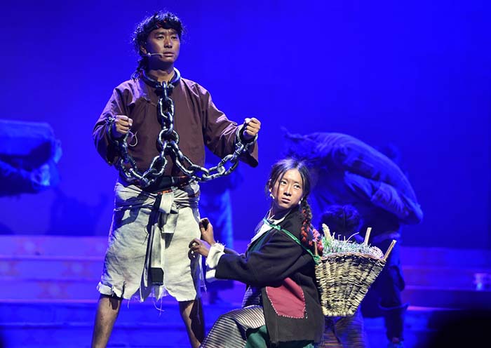 在西藏山南市乃东区,演员在根据真实历史改编的话剧《农奴泪》中演出(3月26日摄)。 新华社记者觉果 摄