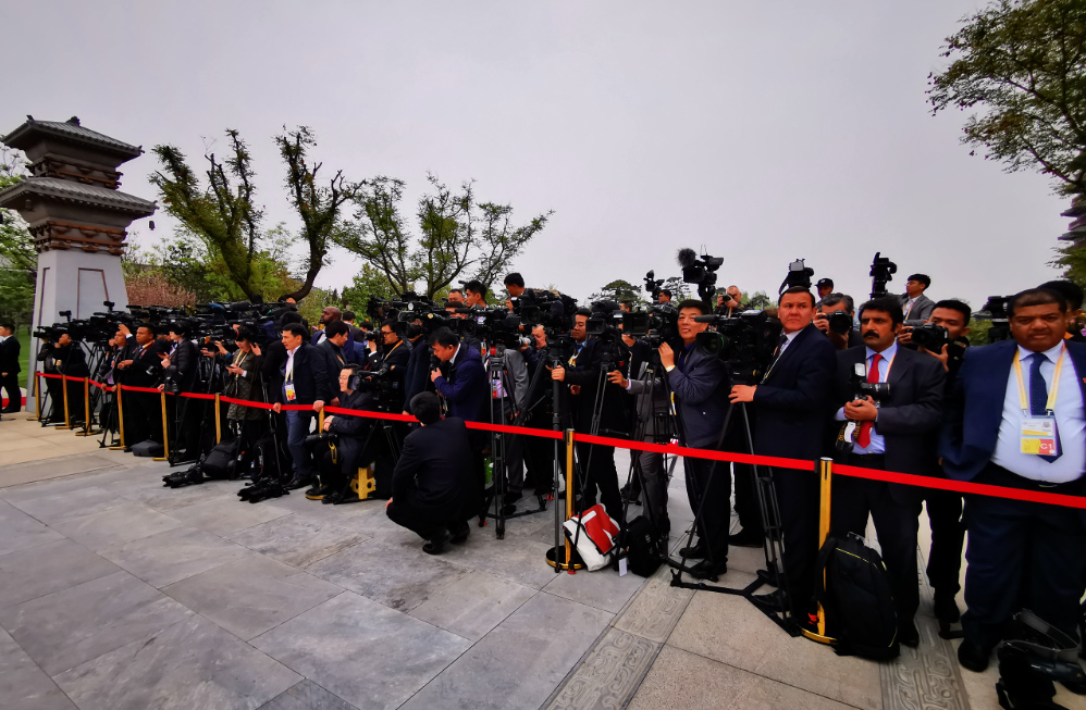△记者准备进入领导人圆桌峰会现场。(央视记者周志国拍摄)