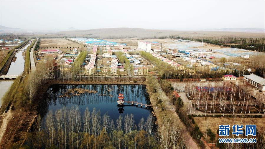 被生态林环抱的黑龙江省尚志市元宝村(4月25日无人机拍摄)。 新华社记者 王建威 摄